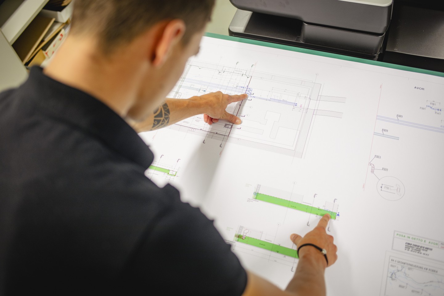 Zeichnerinnen und Zeichner arbeiten eng mit Fachpersonen aus ihrem Gebiet zusammen, zum Beispiel mit Architektinnen oder Bauingenieuren. Ihre Arbeiten führen sie teilweise im Büro und teilweise auf Baustellen aus. Je nach Art und Grösse des Betriebs arbeiten die Berufsleute von Anfang bis Schluss an bestimmten Projekten oder sie sind nur für Teile davon zuständig. Die Arbeitszeiten sind grundsätzlich regelmässig.